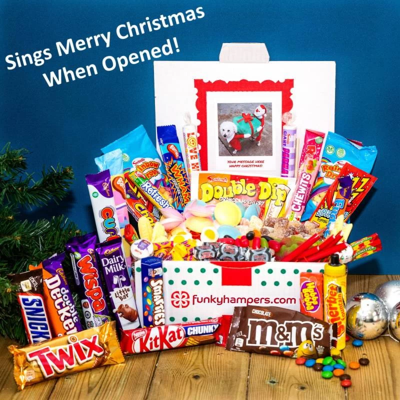 Then, when they open this magical gift, not only will they see the amazing design you have uploaded but the box will also start singing a rendition of “We Wish You a Merry Christmas”. This coupled with the scrumptious contents makes this the perfect way to say Happy Christmas.