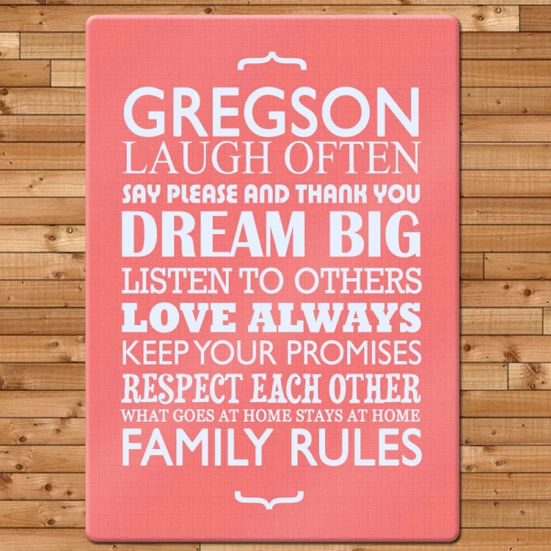 Personalise this board with a surname that sits above a set of heart-warming family rules.