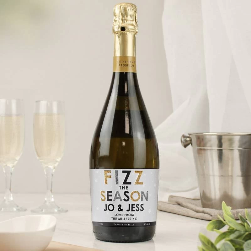 This Personalised Fizz The Season Bottle of Prosecco can be personalised with a name up to 12 characters as well as 2 message lines with up to 30 characters available per line.