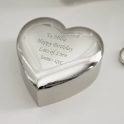 Personalise this Heart Trinket Box with any message over 4 lines and up to 20 characters per line.