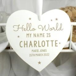 This adorable Hello World Large Wooden heart sign makes the perfect gift for new-borns.