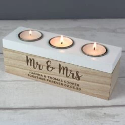 This wooden, shabby chic box can store a small amount of tea lights or trinkets. Three tea lights can be displayed on top of the box, creating a unique feature for any shelf or mantelpiece.