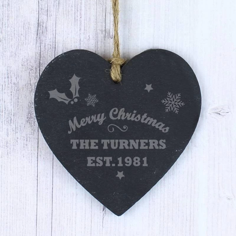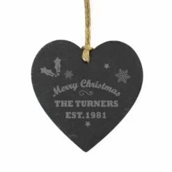 Personalise this Merry Christmas Slate Heart with 2 lines, 15 characters per line.