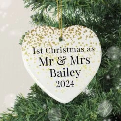 Celebrate a special first Christmas as a married couple with this Personalised Mr and Mrs 1st Christmas Ceramic Heart Decorations Decoration.