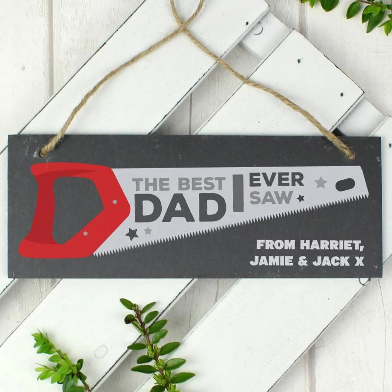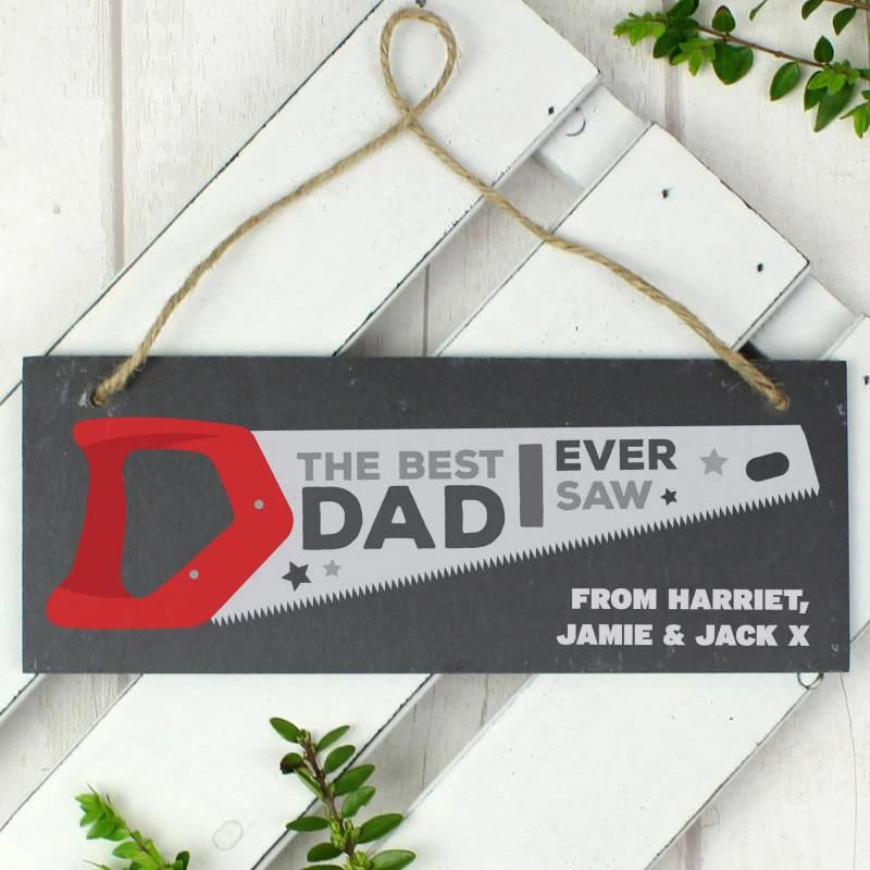 This personalised slate hanging decoration is the perfect gift for a D.I.Y. Dad.