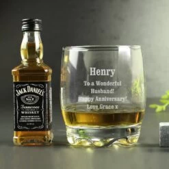 Personalise this Tumbler and Jack Daniels Miniature Set with a name up to 12 characters and message over 4 lines, with up to 20 characters per line.