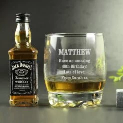 Personalise this Tumbler and Jack Daniels Miniature Set with a name up to 12 characters and message over 4 lines, with up to 20 characters per line.