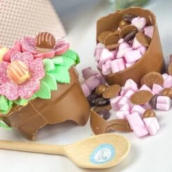 Belgian chocolate flower pot filled with sweets and chocolate.