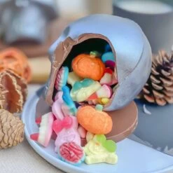 This spooky Silver Skull is made from creamy Belgian milk chocolate. Each skull has a surprise filling- jelly filled brains, gummy witches heads, Dracula fangs, marshmallow pumpkins, and gummy monsters. The pumpkin is set on a thick Belgian milk chocolate plaque- that’s right… even more chocolate!!