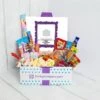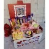 The hamper contains 36 different types of sweets, all individually packaged in sweetie bags. It comes presented in a hand made wicker basket.