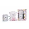 There is a citrus candle with the words, you light up my world, a box of chocolate love hearts, a bag of jelly bean love hearts, a bag of love heart sweets and a 200ml bottle of sparkling Rose.